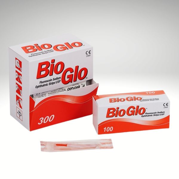 Las tiras reactivas de fluoresceína se utilizan para examinar la córnea y la conjuntiva del paciente con una lámpara de hendidura con un filtro azul.