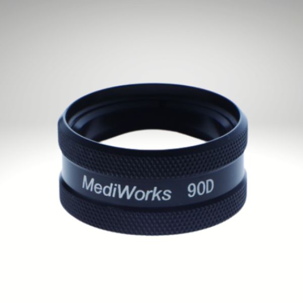 Lente 90D Mediworks. Diagnóstico general y exámenes en las pupilas pequeñas . De pequeño diametro y óptica doble asférica.